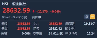 智通财经APP获悉,恒生指数开盘涨0.04%,报28632.59点。国企指数涨0.14%,报10912.43点。红筹指数涨0.01%,报4449.95点。大市盘前成交19.31亿港元。