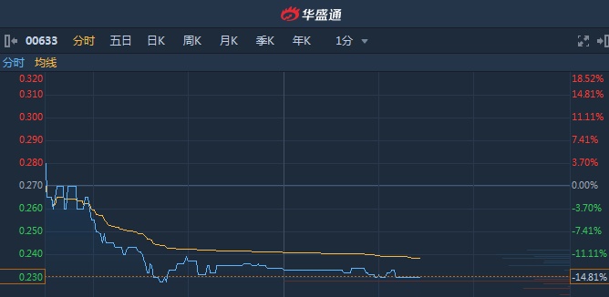智通财经APP获悉,中国全通(00633)此前遭执行董事陈元明减持1930万股,涉资592.12万。截至14时20分,跌14.81%,报价0.23港元,成交额405.6万港元。值得注意的是,该股盘中低见0.228港元,创历史新低。