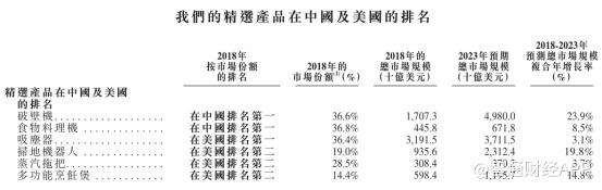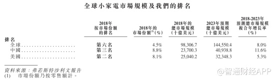 招股书显示,JS环球生活拥有多个市场小家电品牌,包括九阳、Shark及Ninja。根据弗若斯特沙利文报告,以市场份额计,该公司于2018年在小家电企业中分别排名全球第六和中国第三。