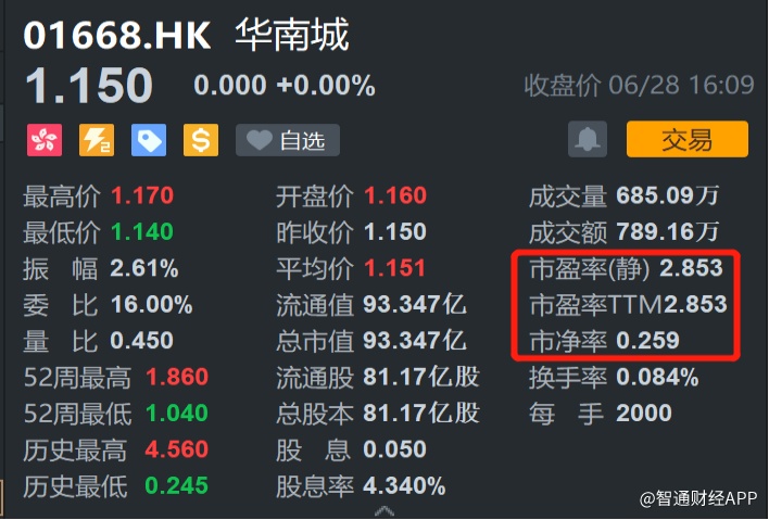 然而,看看这家公司的估值水平,截至6月28日,华南城的静态市盈率仅为2.85倍,市净率仅为0.26倍。是什么让市场给华南城如此低的估值水平?