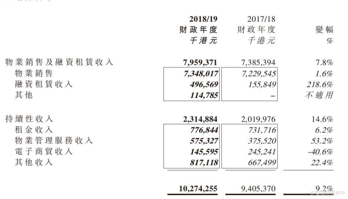 财报显示,华南城除了电子商贸收入在2018/19财年下滑,其他多项业务均保持正则,其中融资租赁收入增幅超过2倍,物业管理服务收入增长逾5成。