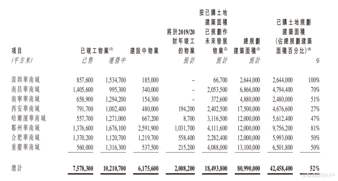 此外,从项目拓展情况来看,华南城在财报中表示,将保留物流及仓储设施、酒店等商业物业及不少于50%的商品交易中心商铺作为自营或长期出租用途,而余下的约50%商品交易中心商铺及住宅物业,将逐步出售,为公司发展提供所需的现金流。为支持公司增长势头和收入基础,2018/19财年,公司以人民币约13.33亿元为哈尔滨及郑州等地的项目增购约150.3万平方米可建筑面积的土地,该等土地的用途以住宅及商业为主。