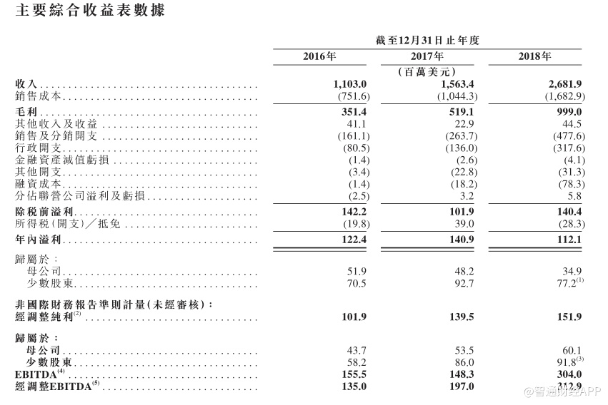反映到财务报表上,JS环球生活确实属于发展不错的小家电企业。2016年至2018年,JS环球生活实现营业收入分别为11.03亿美元、15.63亿美元和26.81亿美元,年复合增长率为34.45%;毛利分别为3.51亿美元、5.19亿美元和9.99亿美元,复合年增长率为30.80%;毛利率稳步增长,分别为31.9%、33.2%、37.3%。