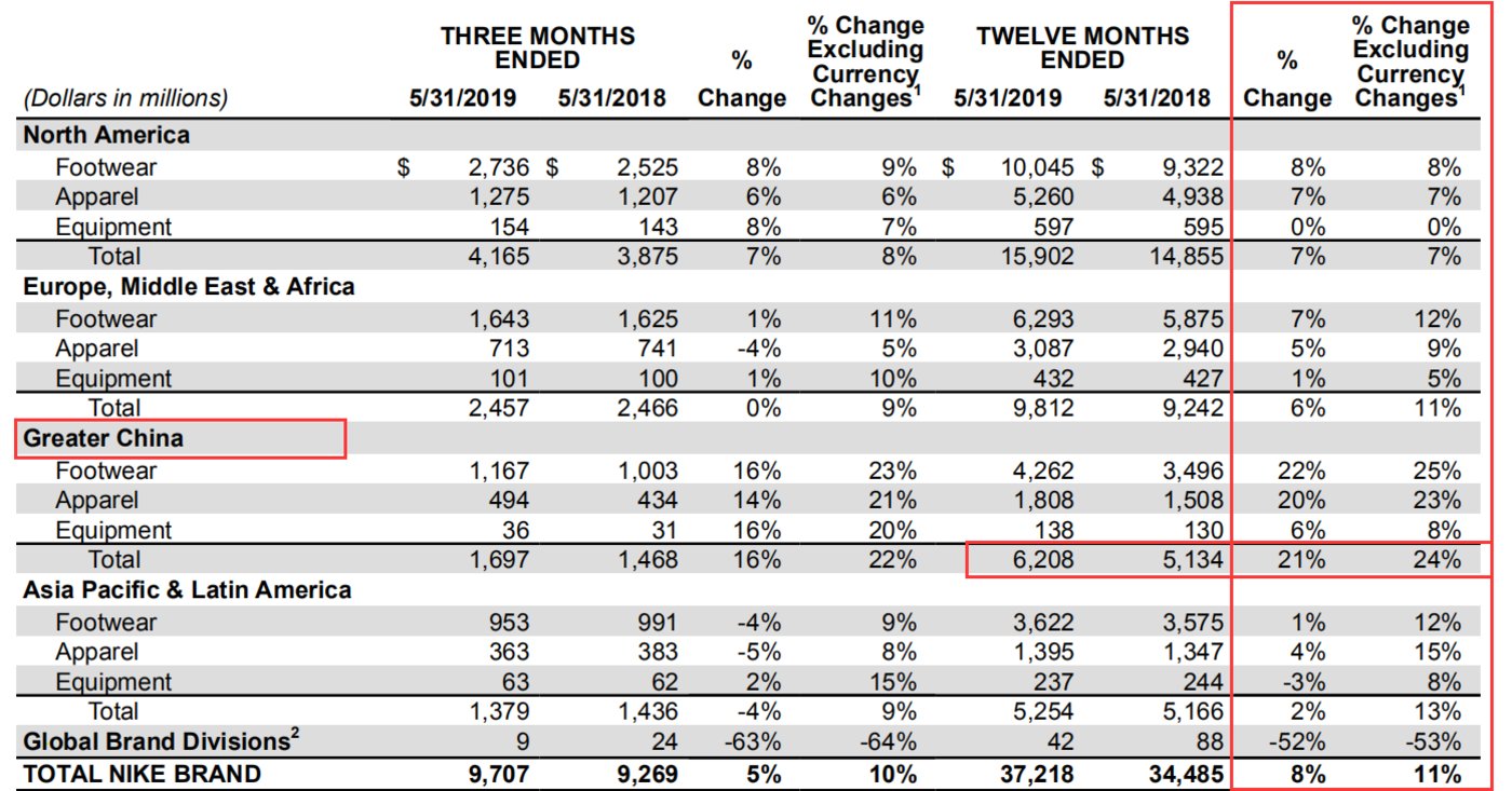 耐克的财报亮点:Q4总营收破百亿,FY19营收大中华区破60亿