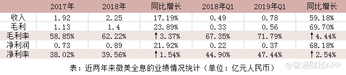 2019年一季度时,微美全息的业绩增长再次提速,收入同比增近60%,毛利、净利润的增速分别为69.7%、68.18%。在客户平均单价同比增长42.86%的情况下,毛利率同比提升4.44个百分点,净利率同比提升2.54个百分点。