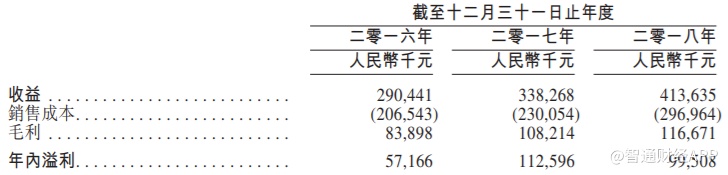 业绩收益方面,2016年、2017年、2018年12月31日止,营业收入分别为2.90亿、3.38亿、4.14亿,毛利分别为8389.8万、1.08亿、1.17亿元,净利分别为5716.6万、1.13亿、9950.8万元。