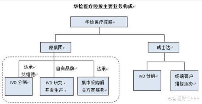 华检医疗为中国IVD(体外诊断)产品分销商,于2017年,原集团为上海IVD市场第三大分销商,而威士达为中国第四大一级IVD分销商。华检医疗亦参与自有品牌“IVD”项下的自有品牌IVD产品的研究、开发、生产及销售。