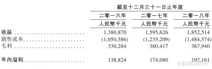 于2016年度至2018年度,威士达实现收益分别为13.81亿元、15.96亿元及18.53亿元;毛利分别为3.30亿元、3.60亿元及3.68亿元;净利分别为1.39元、1.74亿元及1.92亿元;及毛利率分别为23.9%、22.6%及20.9%,净利率分别为10.1%、10.9%及10.5%。