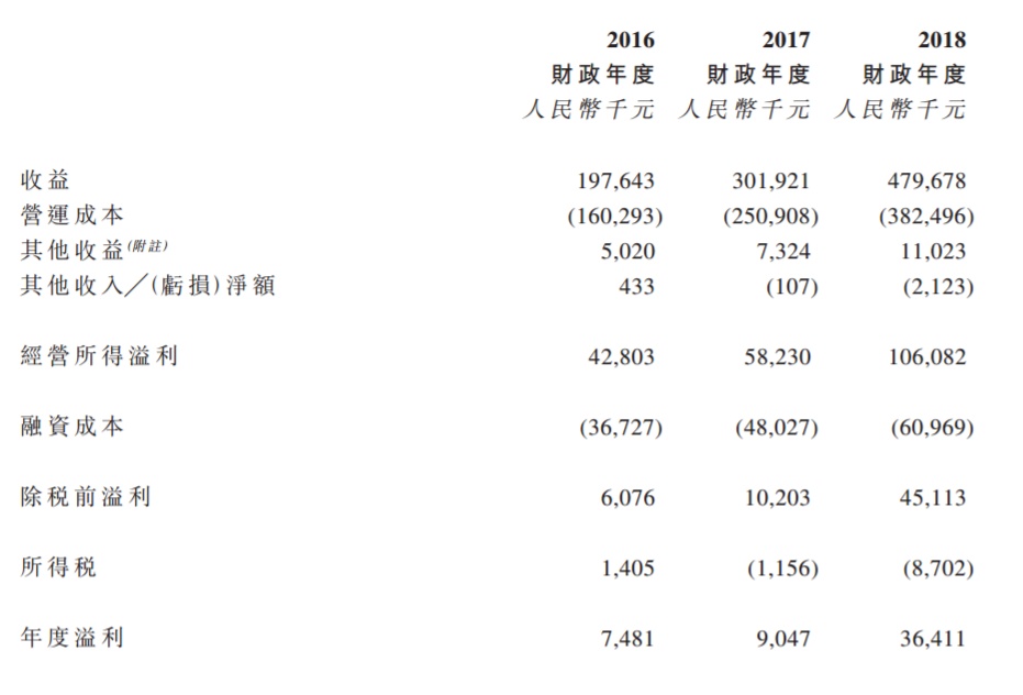 其收益由2016财年至2017财年增加人民币104.3百万元(或52.8%),并于2018财年进一步增加177.8百万元(或58.9%),主要由于其天津滨港园区于2016年6月开始营运,于业绩记录期间产生收益的增加款项等原因。
