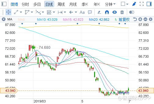 今年三月以来,市场对微博(WB.US)的态度便“由热转冷”,微博股价也从3月最高的每股74.68美元大幅跌至如今的每股43.94美元。