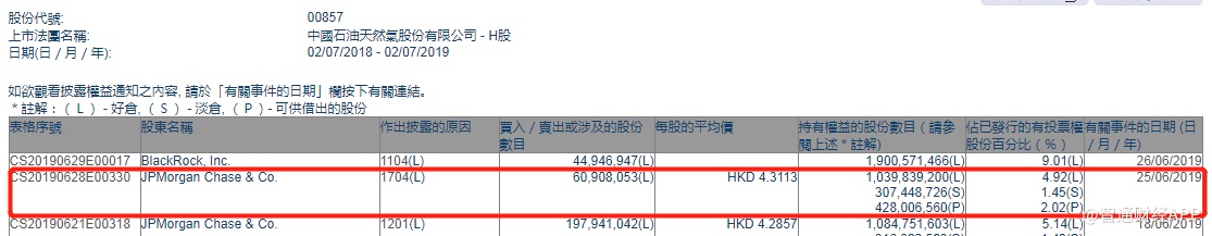 智通财经APP获悉,根据联交所资料显示,摩根大通于6月25日减持中石油(00857)6091万股,每股作价4.31港元,总价值约2.63亿港元,最新持股数减至10.40亿股,最新持股比例减至4.92%。