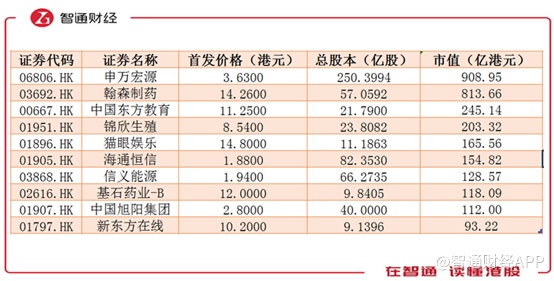 智通财经APP统计,若按照发行价和首发日总股本计算,一季度的上市公司整体体量较小,猫眼娱乐(01896)以165.56亿港元封王,只有三家市值过百亿。而在二季度新股体量飙升,申万宏源(06806)以908.98亿港元登顶,翰森制药(03692)总市值813.66亿港元名列第二。上半年IPO上市公司中,有9家市值过百亿。