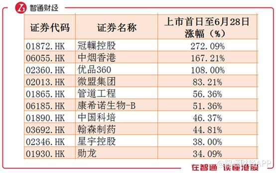 其中有3只个股实现翻倍,冠轈控股上涨272%荣登涨幅榜首,中烟香港和优品360上市以来,分别实现了167%和108%的上涨。