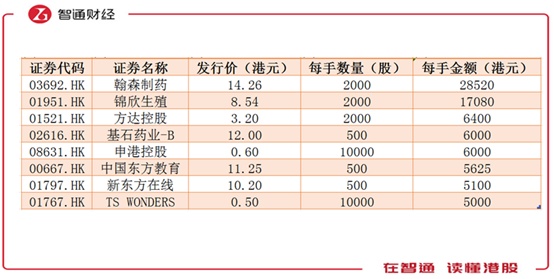 每手金额3000-5000港元的有27家,占比36.5%;每手金额5000港元以上的有8家,其中过万的有2家,翰森制药(03692)以28250港元的打新家称冠,锦欣生殖(01951)以17080港元紧随其后,其他几家分别是方达控股(01521)、基石药业-B(02616)、申港控股(08631)、中国东方教育(00667)、新东方在线(01797)和TS WONDRES(01767)。