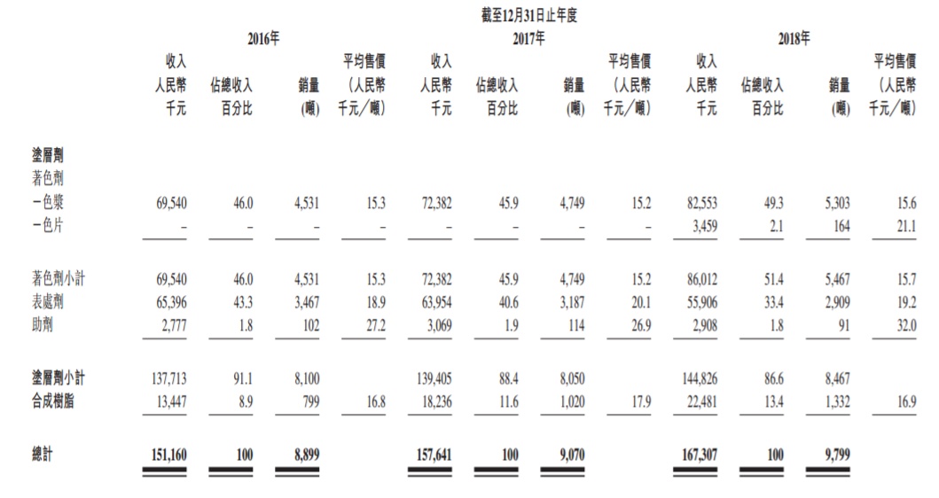 深蓝科技是一家中国知名人工革化学品制造商,主要从事知名品牌“深蓝科技”下的涂饰剂及合成树脂的研发、制造及销售。根据灼识咨询报告,以2018年收入计,该公司于中国人工革涂饰剂市场排名第四,市场份额约为1.9%。于最后实际可行日期,该公司于中国已拥有36项专利,并正在申请4项专利注册。
