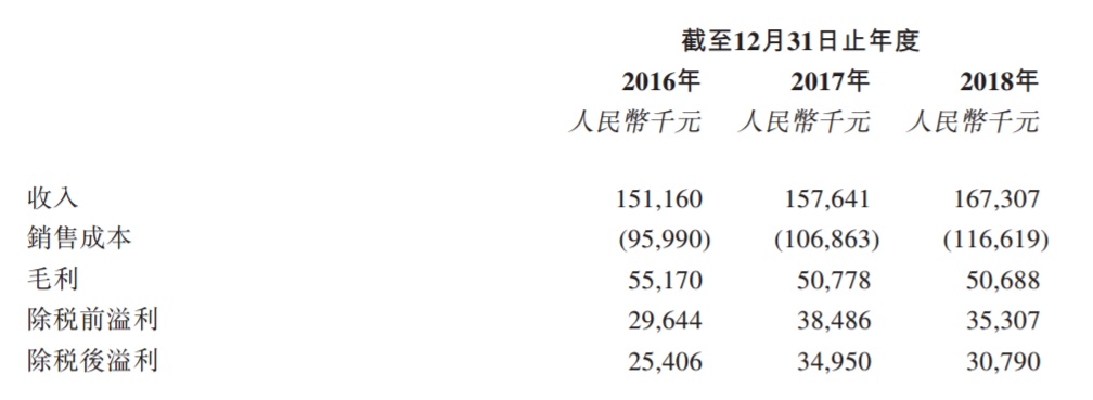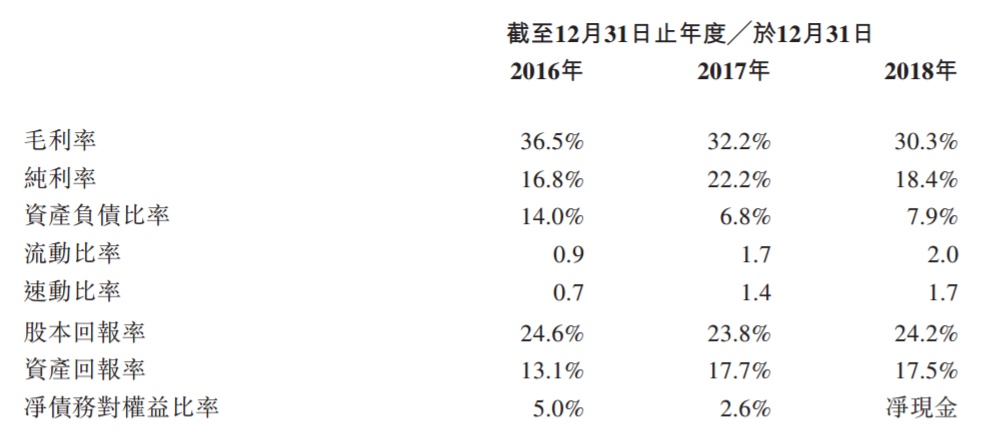截至2016年、2017年及2018年12月31日止年度,深蓝科技的毛利率分别为36.5%、32.2%及30.3;纯利率分别为16.8%、22.2%及18.4%。