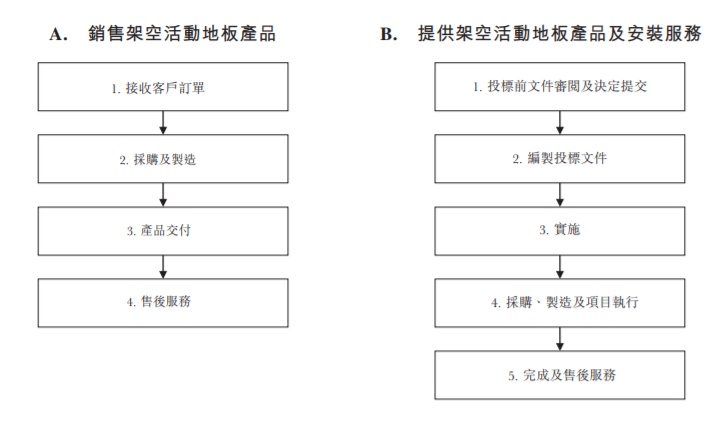 于往绩记录期间,公司来自客户的需求:1)出售架空活动地板产品(不连安装);及2)提供架空活动地产产品及安装服务。倘客户要求安装服务,公司一般委聘安装服务供应商进行架空活动地板产品的相关安装服务。