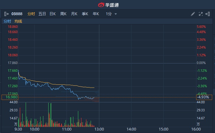 智通财经APP获悉,金山软件(03888)早盘低开低走,截至11时50分,跌5.04%,报16.96港元,成交额达1.99亿港元。