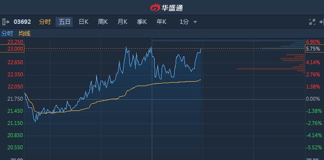 智通财经APP获悉,翰森制药(03692)午后现两宗大手成交,共涉及301.8万股,涉资6757.93万。截至13时57分,涨5.75%,报价23港元,成交额2.515亿。值得注意的是,该股盘中高见23.2港元,创上市新高。