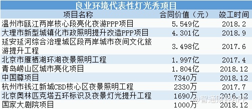 但合同金额高的项目大多来自二线及以下的城市,比如,温州市瓯江两岸核心段亮化夜游PPP项目及大理市新型城镇化市政照明提升改造PPP项目,单单一个温州的项目就接近2017年全年竣工项目的总价值。通过梳理还可以发现,良业环境大部分项目在2018年底竣工。