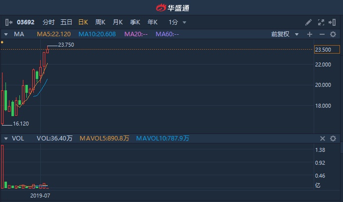 智通财经APP获悉,翰森制药(03692)早盘获强力拉升,高见24.65港元,创上市新高。截至9时55分,涨6.03%,报24.6港元,成交额达4913万港元。