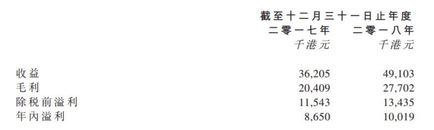 同期,该公司毛利分别约为20.4百万港元及27.7百万港元;年内溢利分别约为8.6百万港元及10百万港元。