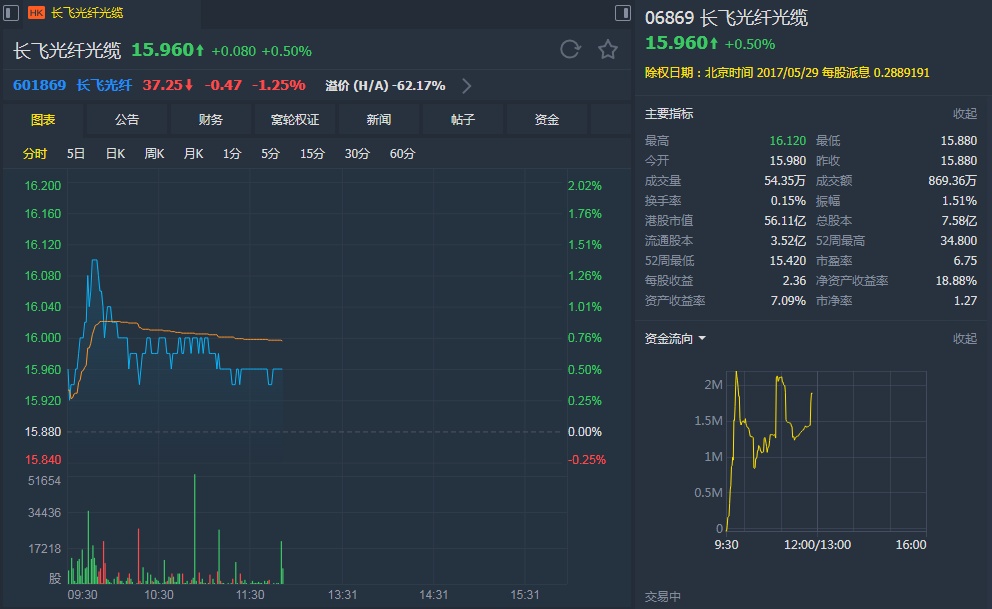 智通财经APP获悉,野村发表研究报告,自去年下半年起光纤行业受产能上升及需求疲弱影响,长飞光纤光缆(06869)受主要供应商中移动(00941)招标影响,光缆及光纤产品价格按年下跌四成,公司的盈利表现已反映大部负面消息。而内地有机会于今年下半年加快5G基础建设,相关因素或有助其走出谷底,预计未来可受益于科技升级,遂将其H股投资评级由“减持”升至“中性”,维持目标价17港元不变。