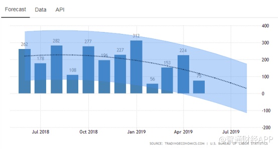 美国劳工部周五公布的数据显示,5月非农就业人口增加7.5万人,创出三个月最低水平,还不及预期18万的一半。报告显示,衡量行业招聘比例的扩散指数跌至两年低点54.8%,美国仅有半数公司正在招聘。这意味着多个行业的就业形势都在放缓。