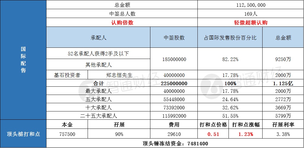 国际配售中签人169名,认购倍数为轻微超额认购。