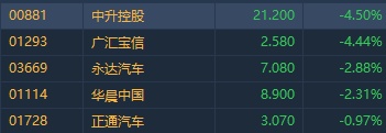 智通财经APP获悉,汽车经销商股今日走势疲弱,午后加速下行。截至发稿,中升控股(00881)、广汇宝信(01293)跌超4%,永达汽车(03669)、华晨中国(01114)跌超2%。