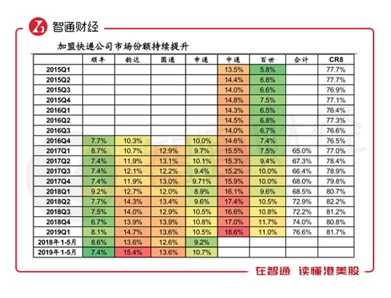 因此,目前美股市场上的行业市占率第一,且提升速度仍在龙头中突出的中通快递,就值得关注一波了。