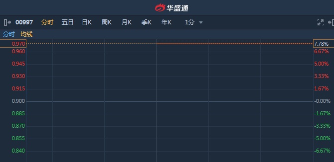 智通财经APP获悉,普汇中金国际(00997)早间披露年报,复牌股价大幅高开,截至9时20分,涨7.78%,报价0.97港元,成交额3.395万。