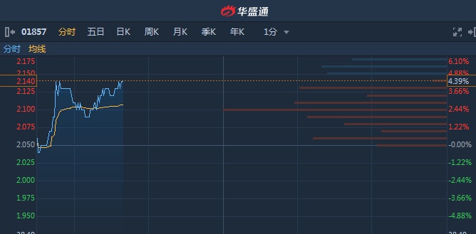 智通财经APP获悉,中国光大水务(01857)签署3个环保项目,涉资约3.4亿元。此消息助力股价上扬,截至10时38分,涨4.39%,报价2.14港元,成交额766.4万。