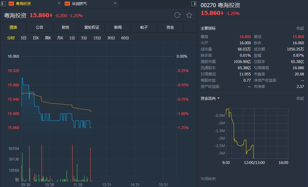 智通财经APP获悉,大和发表研究报告表示,将粤海投资(00270)评级由原来“买入”降至“跑赢大市”,因股价自四月中以来累升不少,但将目标价上调6%至18.3港元。该行还称,粤海的股价自5月初以来跑赢大市,主要由于投资者的避险情绪,认为今年带动盈利增长因素,包括来非东江水项目、广州珠光路物业及东莞公私合营项目。粤海投资股息率有3.7厘,价值与香港公用股同业相比比较吸引。