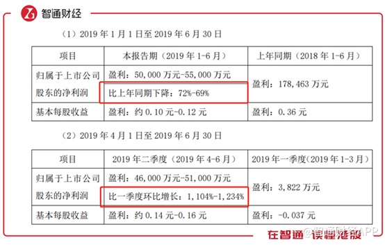 不过,公告还显示,盈利下滑的“锅”来自于一季度,2019Q2预计盈利4.6-5.1亿元,相比一季度3822万元,环比增长1104%-1234%,二季度利润占到上半年利润的92%-92.7%,也就是说上半年的利润基本都来自于二季度。一二季度俨然一副冰火两重天的态势。