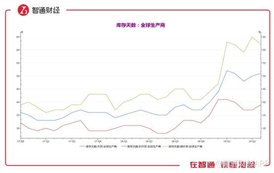 而且,由于之前的纸品销售下滑,实际上纸浆的库存也有所上升,据统计,2019Q2全球木浆生产商的库存天数平均达到51天,创造了新高,而这一部分库存的消化还需要时间,因此短期内纸浆价格难有大幅上升。