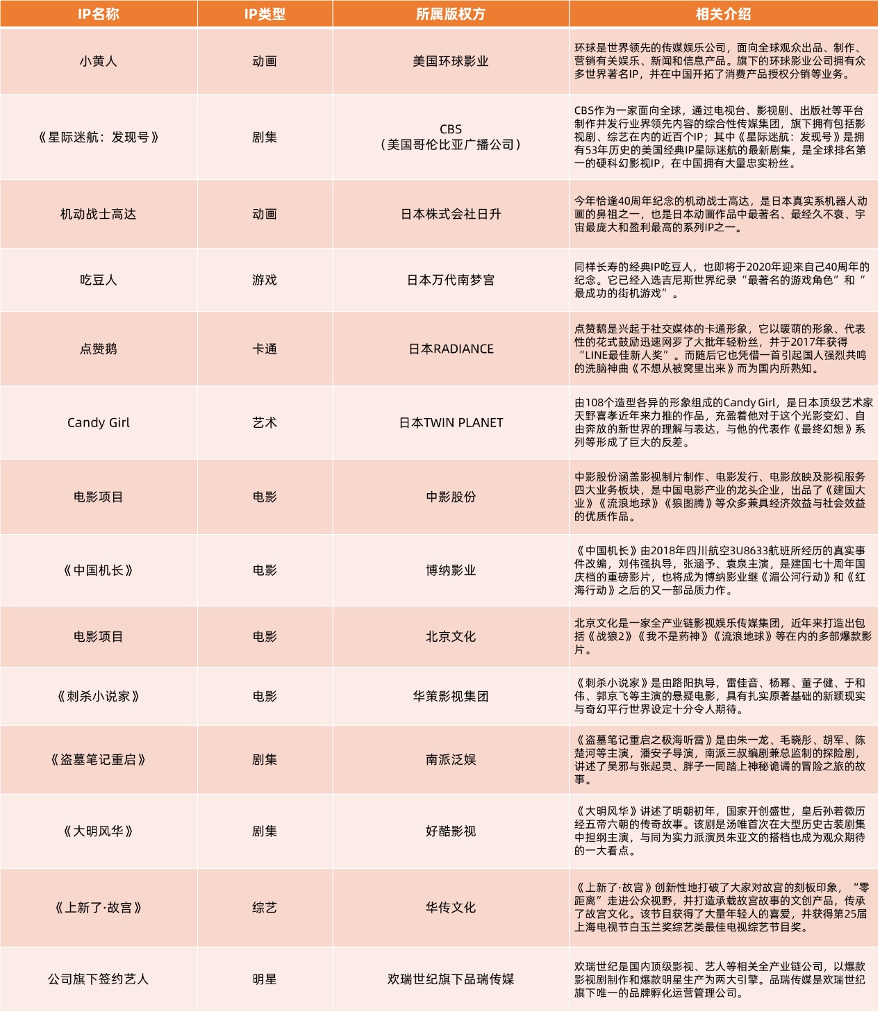 参与本次签约的IP项目列表
