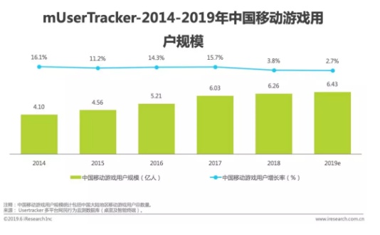 2018年中国移动游戏市场保持上升趋势,市场规模1646.1亿元,同比增长10.5%。用户规模6.26亿人,同比增长2.7%。