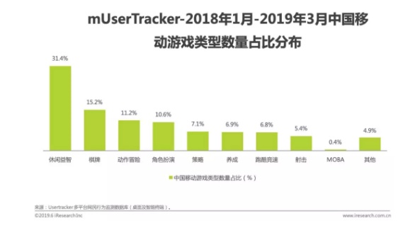 休闲益智类游戏在产品数量上,占据了整个中国移动游戏产品数量的31.4%,也可以从侧面看出其研发成本低、研发周期短的特性。而反差最大的则是射击类游戏与MOBA类游戏,以极少的产品数量,占据了极高的市场份额。整体来看,中国移动游戏市场也基本符合二八定律,大制作、大营销、大IP的游戏往往更容易获得成功。