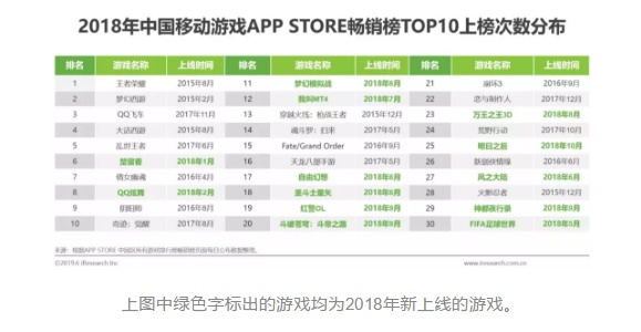 2018年共有13款新游上榜, 为近3年之最。这主要是因为在中国游戏市场版号政策紧缩的情况之下,厂商对已经获得许可上线的游戏重视程度较之往年有所提升,在游戏未上线前,不再急于将产品面向玩家,而是不断认真打磨游戏品质,把细节做到充足之后再进行推广;在游戏上线之后,也继续投入资源、加强运营力度,不会轻易放弃任何一款产品。由此可见,版号政策的调整,反而从侧面对中国游戏市场产品品质提升起到了推动作用。