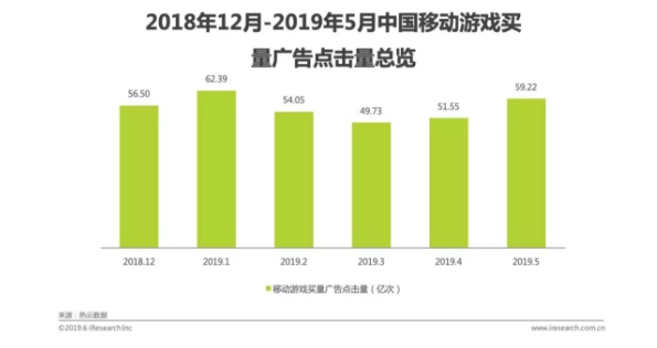 通过买量获取用户,是中国移动游戏市场最常见的推广方式之一。自2018年2月起,热云数据上线“反作弊”功能,剔除了移动游戏广告投放过程中产生的大部分无效点击,使得整体买量市场的数据可靠性大幅加强。中国移动游戏广告整体点击量在近半年的时间内,没有产生特别大的落差值,市场趋于稳定。这也与人口移动游戏市场用户规模趋近天花板的预期相符合。