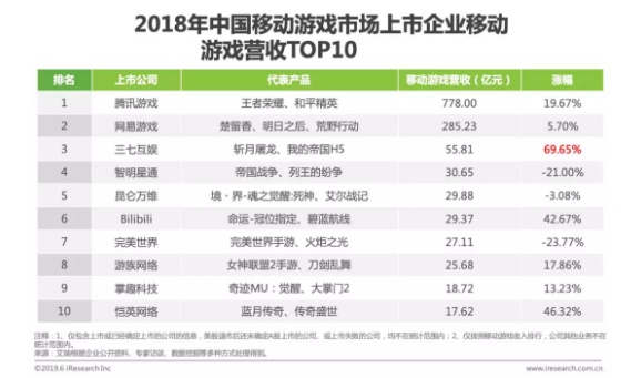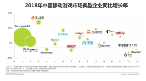 在经历了2018年游戏版号政策调整的事件之后,头部移动游戏厂商仍保持了11.11%的平均增速。步入2019年后,随着版号政策一步步的恢复正常运转,中国移动游戏市场有望在未来的2年内,通过国内+海外的同步运营组合战略,迎来一波新的爆发。