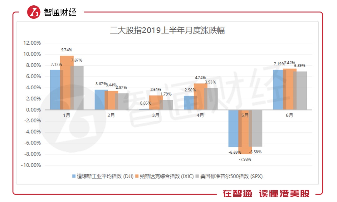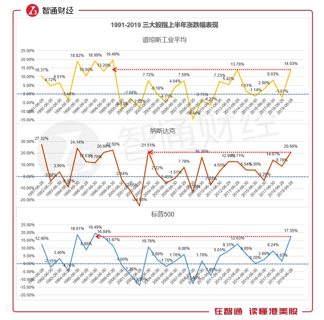 其中,道琼斯工业平均指数创1999年以来最好上半年涨幅,标普500指数更是走出22年以来最好上半年表现。在2019年多事之秋的大背景下,美股能在上半年走出这样的优异表现令人出乎所料。