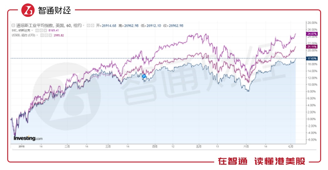 截至2019年上半年收官,纳斯达克指数较年初涨幅达20.66%,创16年来最好上半年涨幅表现。与此同时,标普500指数、道琼斯工业平均指数分上半年涨幅也分别达17.35%、14.03%。