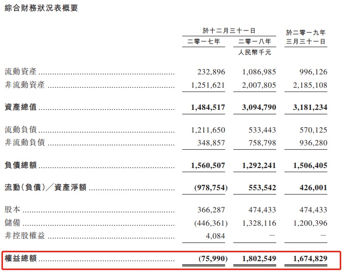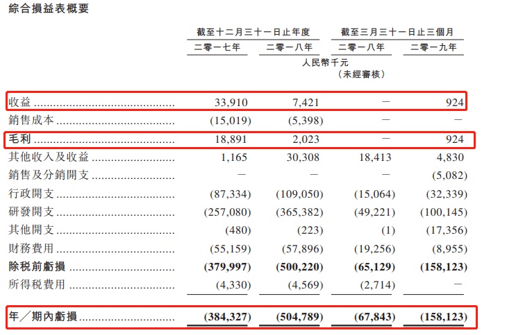 财务数据显示,2017年、2018年和2019年前三个月,复宏汉霖营收分别为3391万元,742.1万元,92.4万元;年内亏损分别达到3.84亿元,5.04亿元和1.58亿元;负债总额分别为15.6亿元,12.9亿元和15.1亿元;权益总额分别为7599万元,18.03亿元,16.74亿元。
