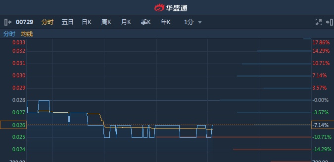 智通财经APP获悉,细价股五龙电动车(00729)盘中一度低见0.02港元,创逾11年新低。截至14时05分,跌7.14%,报价0.026港元,成交额123.4万。