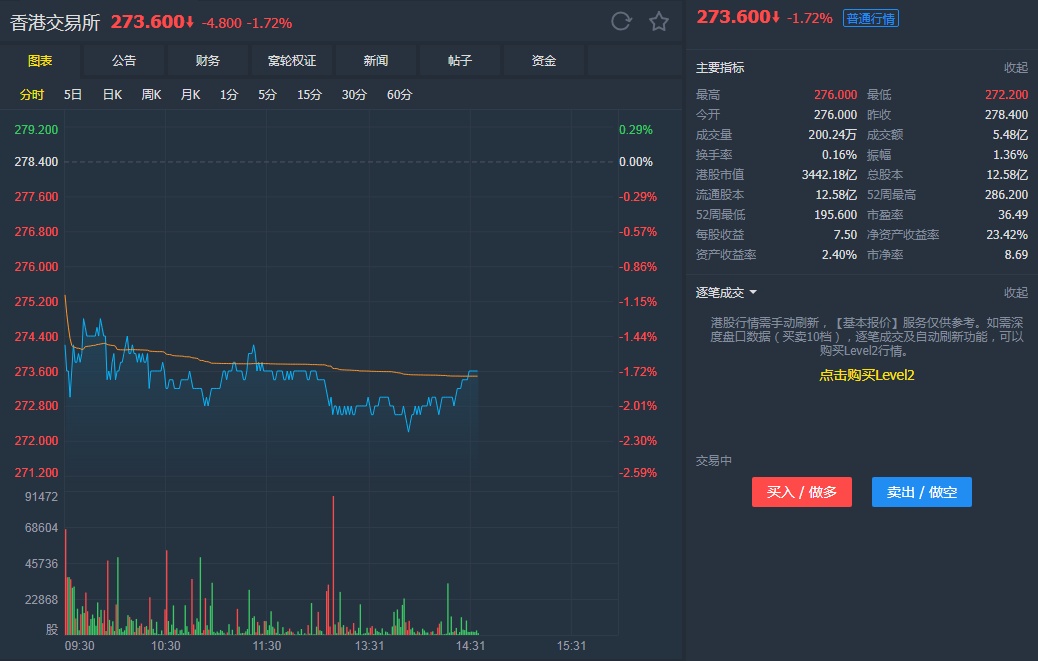 智通财经APP获悉,小摩发表研究报告称,维持港交所(00388)“增持”评级,目标价300港元。同时,下调港交所2019-2020年每股盈利预期分别4%及1%,而2021年则维持不变,以反映对这三年期间日均交易量的数字分别调整至1,564亿元、1,859亿元及2,093亿元。