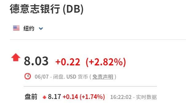智通财经APP获悉,德意志银行(DB.US)股价在欧洲一度上涨4.4%,成为斯托克欧洲600银行业指数中表现最好的成份股,同时也是斯托克600指数中表现第二好的成份股。截至发稿,其在美股盘前涨幅达1.74%。