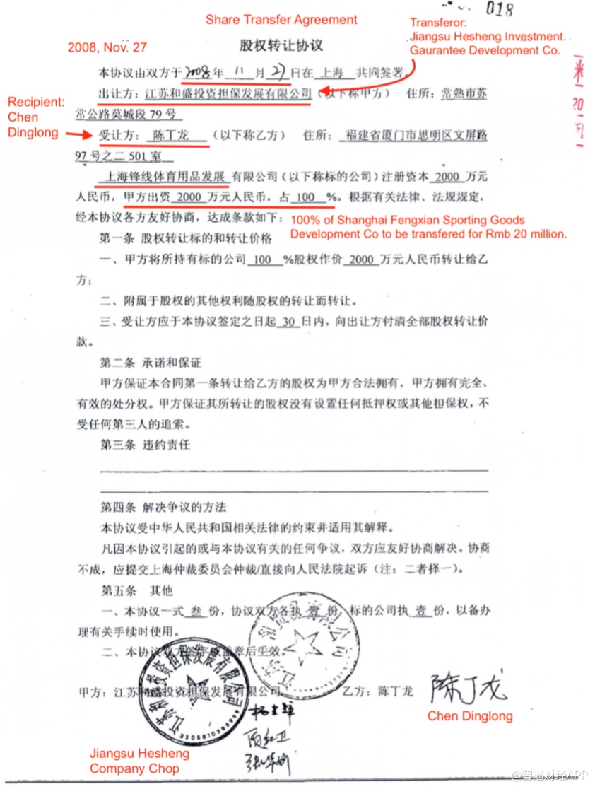 这一举动印证了出售锋线资产属于腐败行为,以及和盛是名副其实的壳公司。所谓第三方受让人名为陈丁龙。