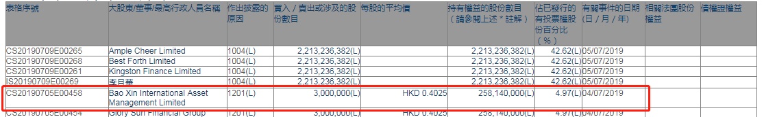 智通财经APP获悉,根据联交所资料显示,Bao Xin International Asset Management Limited于7月4日减持麦迪森控股(08057)300万股,每股作价0.4港元,总价值约120万港元,最新持股数减至2.58亿股,最新持股比例减至4.97%。